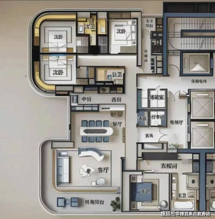 项目采用精装交付,层高在3.3米至3.6米之间。物业费预计不低于9.8元/㎡/月,由中信物业提供管家式服务,整体规划为涵盖住宅、商业、酒店、办公等业态的大型综合体,总建筑面积约31.64万平方米。小区采用空中花园设计,住宅起始高度约18米,以优化视野和私密性。