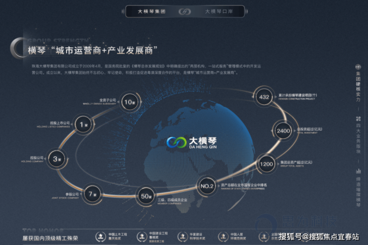 珠海大横琴集团有限公司(简称大横琴集团或集团)是珠海市国资委于2009年4月成立的直属国有企业。成立以来,大横琴集团坚守促进澳门经济适度多元发展的初心使命,是珠海国资国企践行粤澳深度合作的重要载体和骨干力量。截至目前,大横琴集团总资产超2600亿元,累计开发建设项目487个,拥有全资子公司12家、控股上市公司2家、控股公司2家、参股公司11家以及三级、四级成员企业63家。