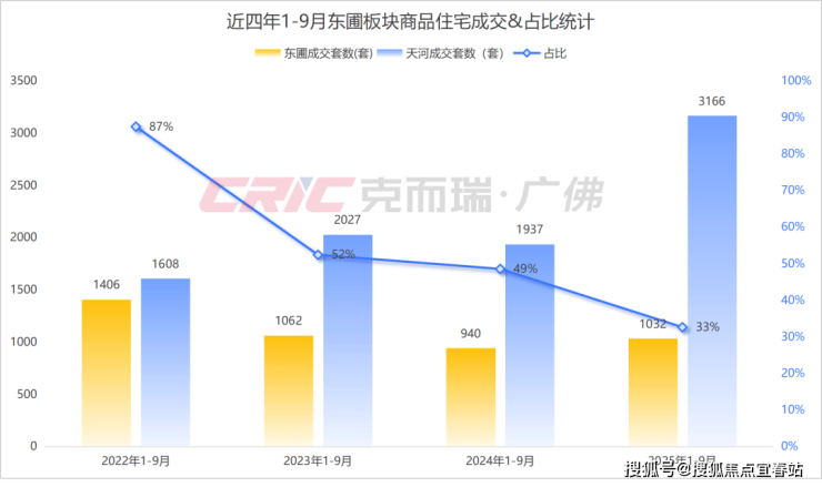 市场表现方面,克而瑞数据监测显示,地块所处的东圃板块今年1-9月商品住宅成交1032套,较去年同时期增长10%,区占率33%。