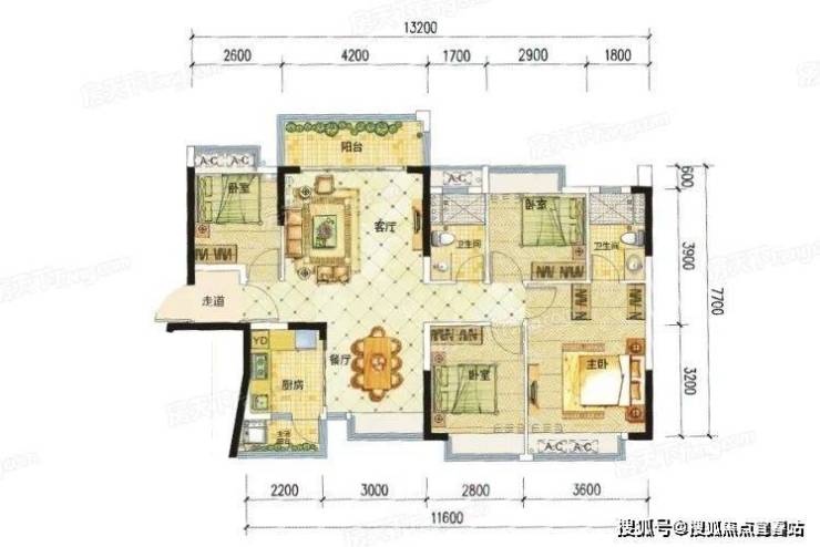三代同堂:四居户型适合与老人同住的家庭,每个家庭成员都能拥有自己的私人空间,同时保证了家庭成员间的交流和互动。