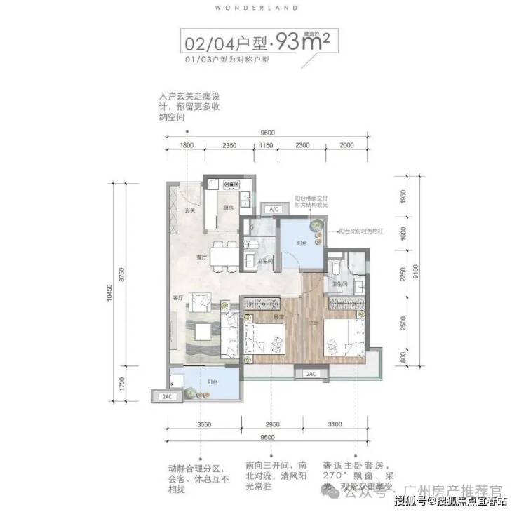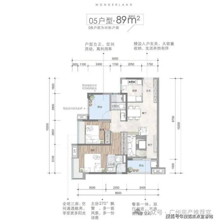 89㎡格局跟79㎡基本一致,除了主卧带套房外,每个房间尺度都稍微大些,目前总价在210万起。