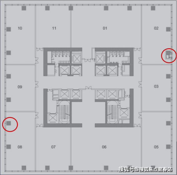 仅27层商务空间划分高中低三个电梯分区,分区细致