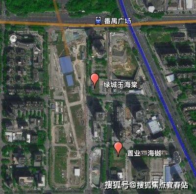 在来看看项目,它就在绿城玉海棠的南面,靠近番禺广场,不过相比前者,它的面积就要小很多,所以只能做成单体楼。