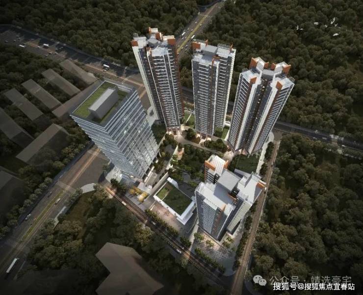 建筑采用现代风格设计,强调简约而不简单,打造既美观又安全的小区;整体呈围合式布局,开阔了视野,并且保证了每户的通风和采光。