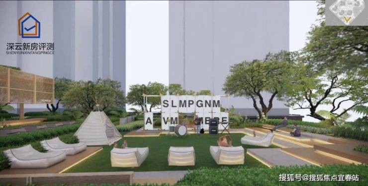 【抬高式檐上浮岛花园露台】:约 1000㎡业主私享空中花园,位于商业顶层,是邻里交流休闲的无界空间。