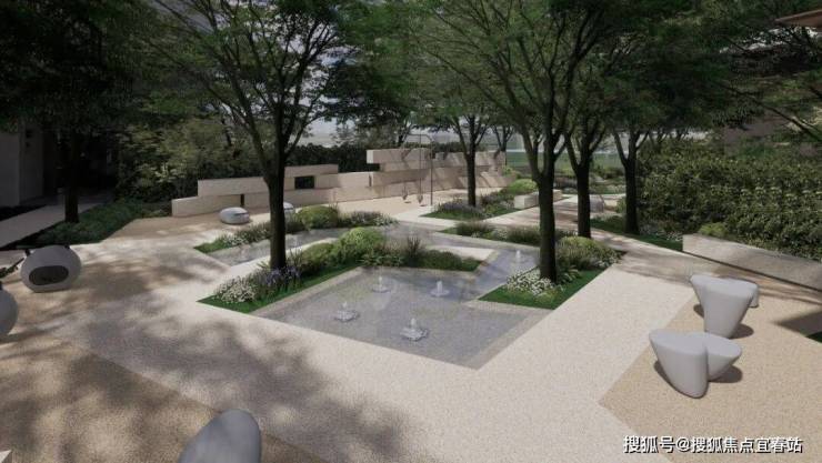 【自然水岸游泳池】:约 400㎡无界亲子泳池,联动 7 栋架空层设更衣区,绿植与跌水景观营造度假感。