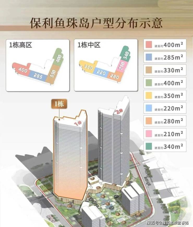 首推1栋大平层,户型为200-400㎡ 在规划上,保利鱼珠岛一共4栋建筑,1栋和2栋为大平层,大约是400多户。 首推的是1栋大平层,高50层,建筑面积大概分为200-300-400平。
