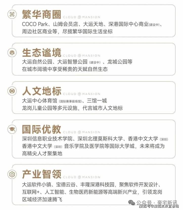 全能顶配,自成一极:项目周边星河COCO Park、山姆会员店、大运中心体育馆、深圳第二音乐厅等顶级配套已全面建成,生活、商业、文体、教育资源均为城市级配置,满足终极改善需求。