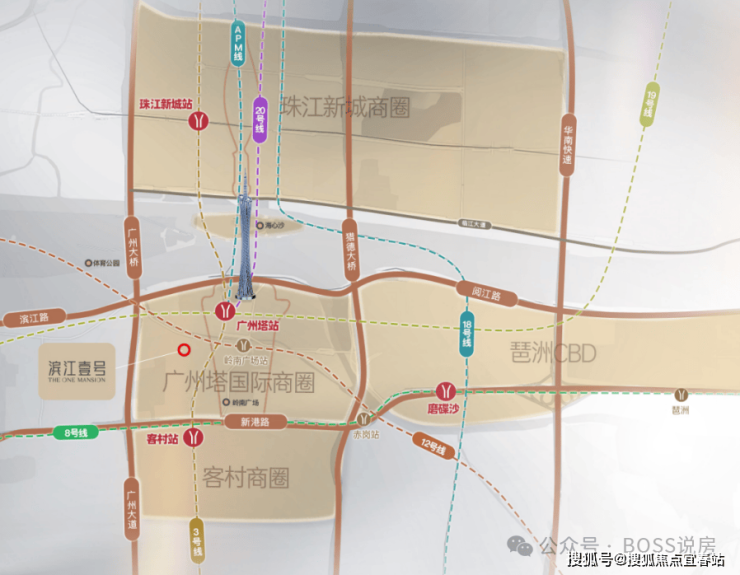约2公里直达珠江新城、琶洲CBD,;