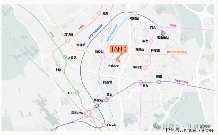 直线距离地铁25号线(一期)上油松站(建设中)约100m,同时25号线(建设中)与4号线、22号线(建设中)、27号线(规划中)交汇,未来从上油松站出发,可实现一站一换乘,快速畅达南山深圳湾超级总部基地、福田CBD、坂田华为基地、罗湖等核心区。