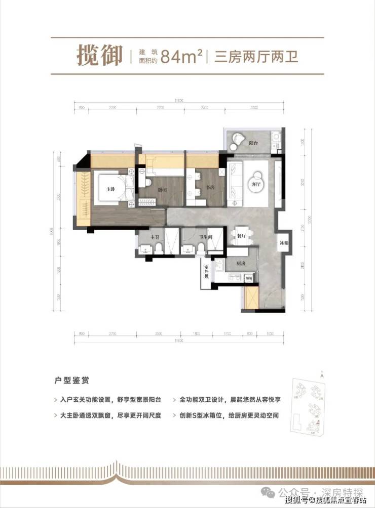 户型:建面约80-110㎡三到四房两卫
