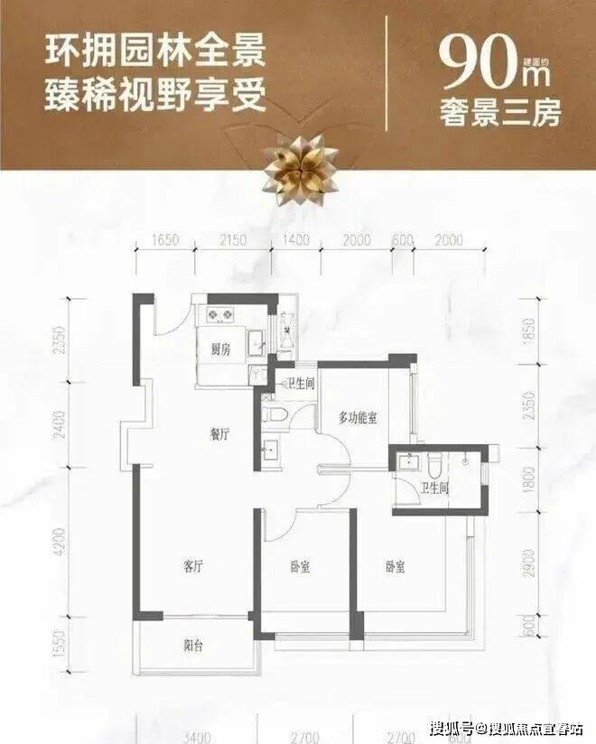 约84㎡南向山湖海景,最低门槛上车3房2卫,总价约358万起