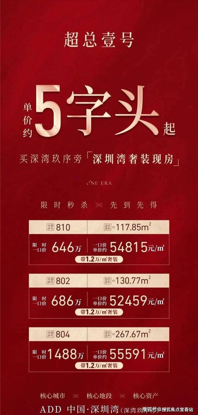 单价约56666元/㎡起,带1.2万/㎡奢装,仅1/4中海深湾玖序价格,买深超总稀缺奢居大平层!