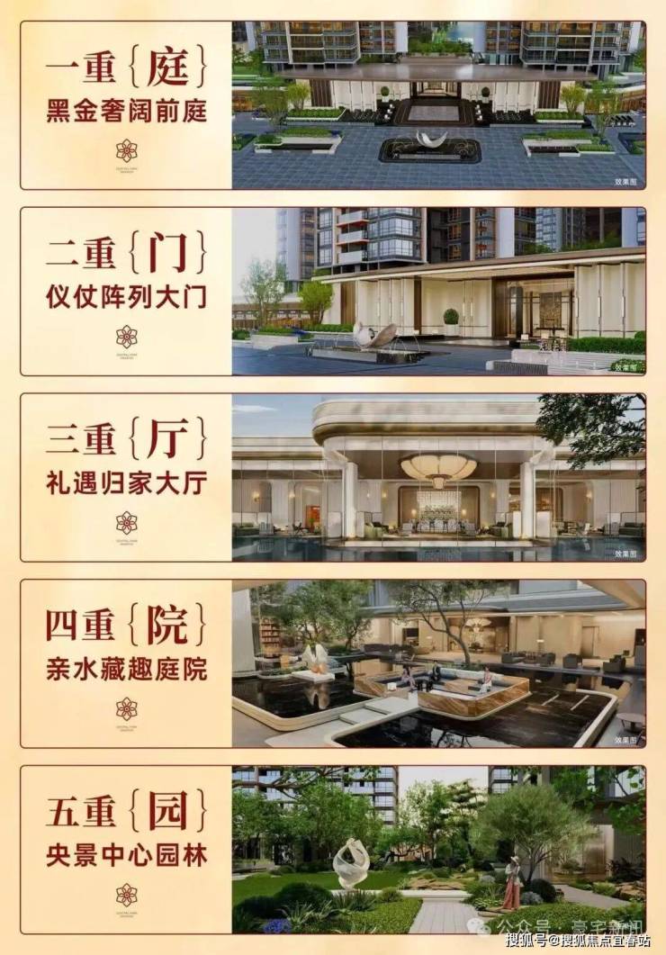 •景观双轴,十大主题庭院:礼序前庭、琉光下沉式庭院、游泳池、社区会客厅、轻氧健身、亲子乐园、社区慢跑场等十大主题景观庭院。