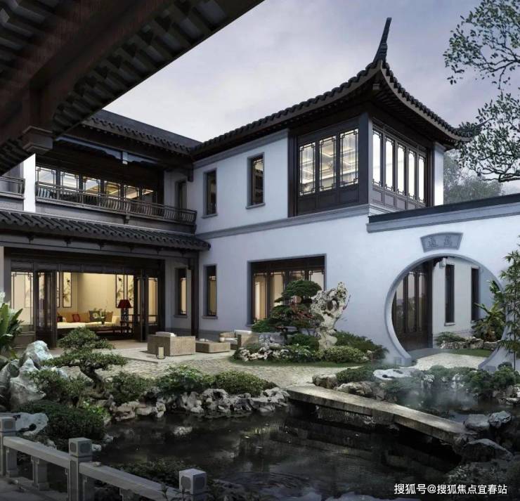 将山、水、亭、台、桥等中式雅居元素