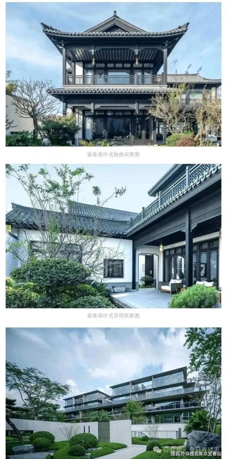 独栋别墅(500-1674㎡):采用铝构现代材料与传统中式戗角造型,搭配“流动景观”庭院与双观景露台,将山景引入室内