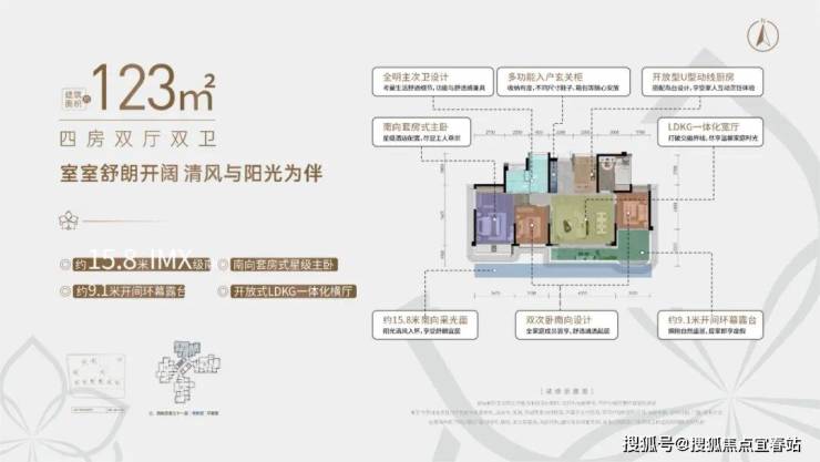 约32㎡南向套房主卧,搭配南向约3.9米大开间,“小家化”尺度与功能设计,从居住舒适度到功能性保障主人的从容起居;大四房的空间配置,可灵活满足三口之家、二孩家庭三代同堂等不同家庭结构和周期需求,真正达成“一步到位”的改善生活方式。