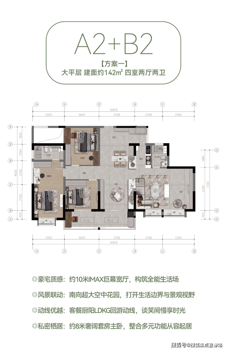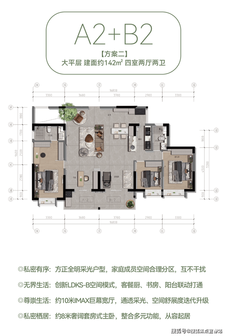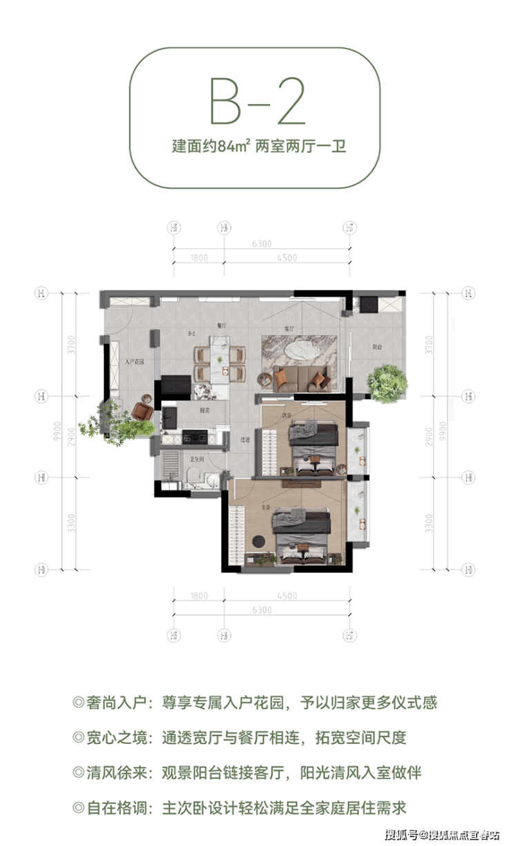 具体来说,A-2户型(建面约60㎡)以独立入户花园和客餐厨一体化设计,打造宜居范本;B-2户型(建面约84㎡)则通过通透宽厅和观景阳台,让阳光清风入室做伴;B3奢阔大平层(建面约89㎡)以高得房率和阔绰宽境,提升居住品质;A-2+B-2大平层(建面约142㎡)则通过豪宅质感和私密有序的设计,满足家庭成员的多元需求;而B-3+B-3空中微墅(建面约178㎡)更是以人性规划和品质宜居的设计理念,打造出一处尊贵的居住空间。