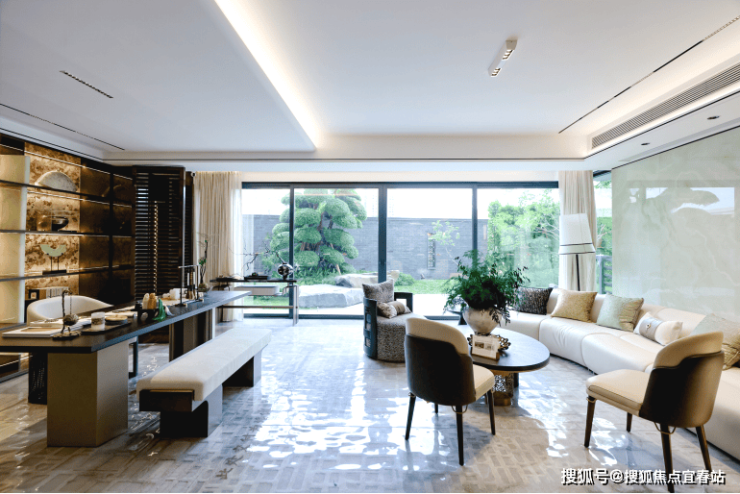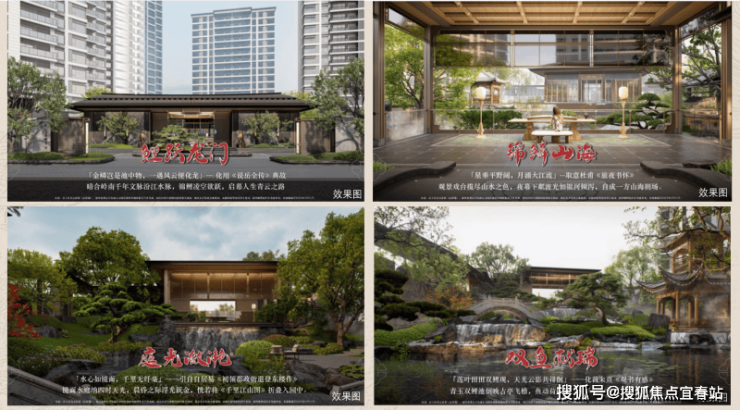 园林景观上,师法四大岭南名园,复刻岭南名园造园手法,打造一园三堂、五重归家礼序,融入祥瑞锦鲤IP,匠造“可行可望可游可居”的东方山水隐园,还参照梁园半边亭、拱桥等经典场景元素,打造祥瑞园林八景。