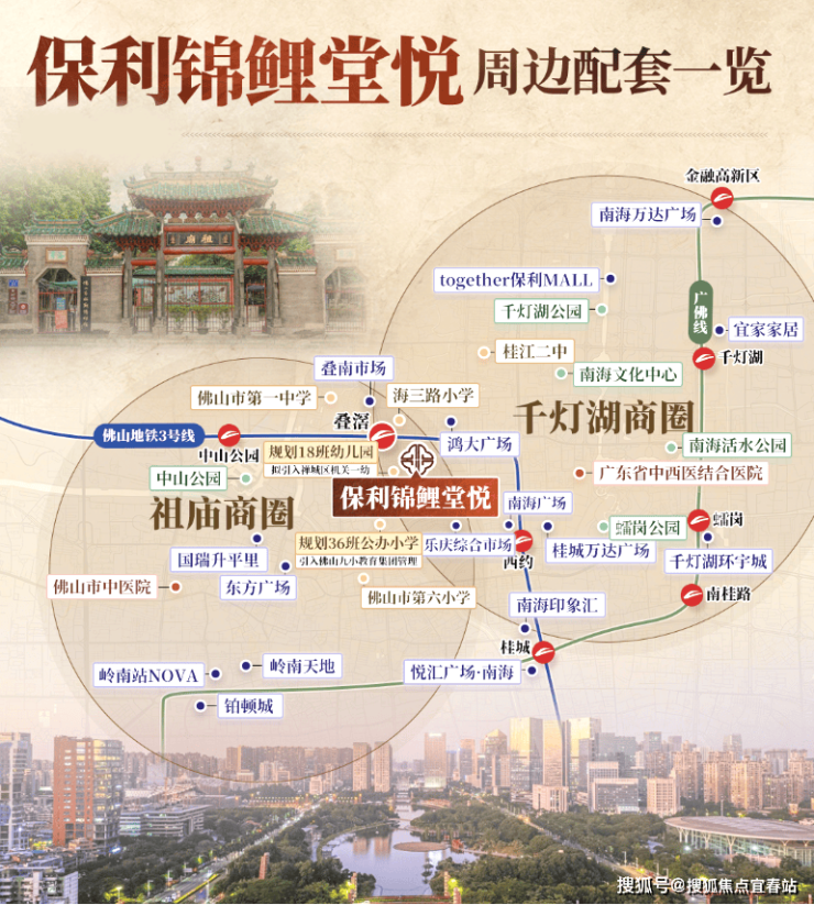 近10年祖庙中心仅出让4宗商住地,新盘供不应求,去年某盘4个月售罄的记录至今未破。这里不仅是佛山行政中枢,更坐拥“行政+学区+文旅”三重价值:市政府坐镇,祖庙地铁站吞吐广佛通勤人流,岭南天地、NOVA岭南站等14座商场构成商业矩阵,佛山九小、白燕小学等6所省一级名校扎堆。