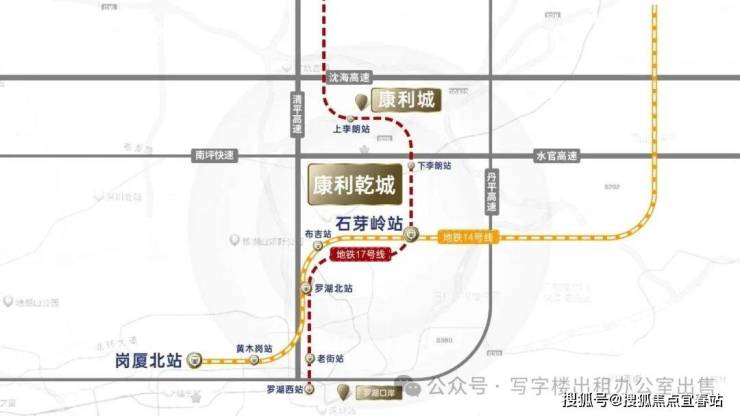 距双地铁(14、17号线)交汇站——石芽岭站仅百余米,14号线2站罗湖,3站福田,17号线直达罗湖口岸;