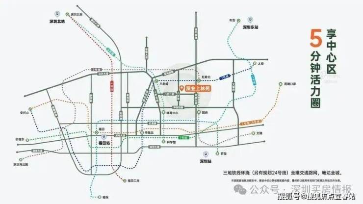 深业上林苑坐落于深圳福田区八卦岭,是城市发展的核心区域,处于金融贸 易、生态景观、居住生活三条主轴交汇处,是福田区未来新的增长点和创新支点。周边交通 网络发达,6/7/9号线地铁环绕,畅达全城,更有未来规划的24号线加持。多条主干道环 绕,与城市的各个重要区域紧密相连,无论是自驾出行还是乘坐公共交通工具,都能轻松畅 达。