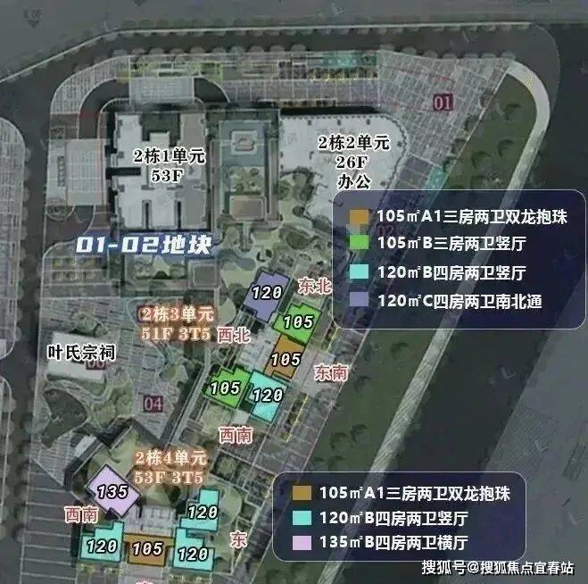 105㎡有两个户型,分别为A1双龙抱珠以及B户型传统竖厅