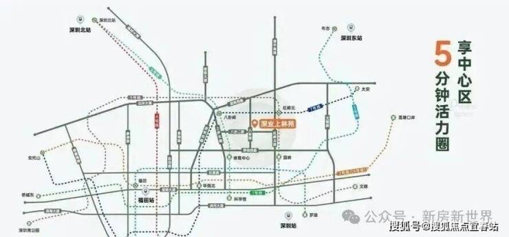 深业上林苑所处区域具有显著区位优势。项目周边形成“3地铁环绕”的交通格局,包括地铁6号线、7号线、9号线,另有规划中的24号线,可快速连接城市主干道,20分钟内抵达福田高铁站等城市枢纽。