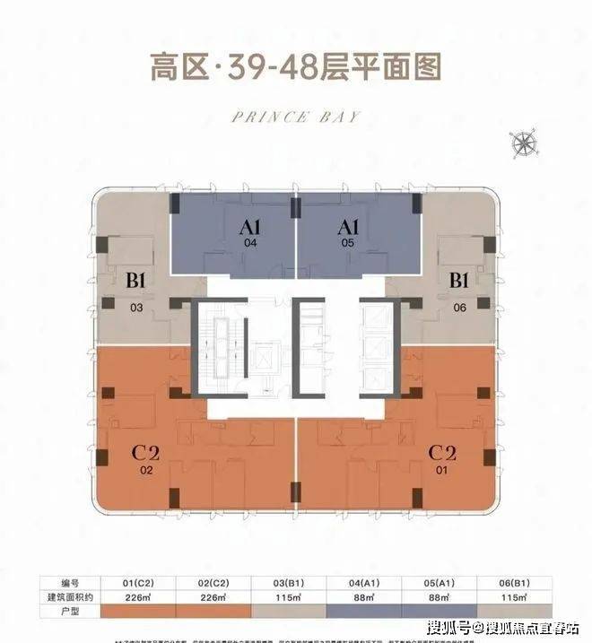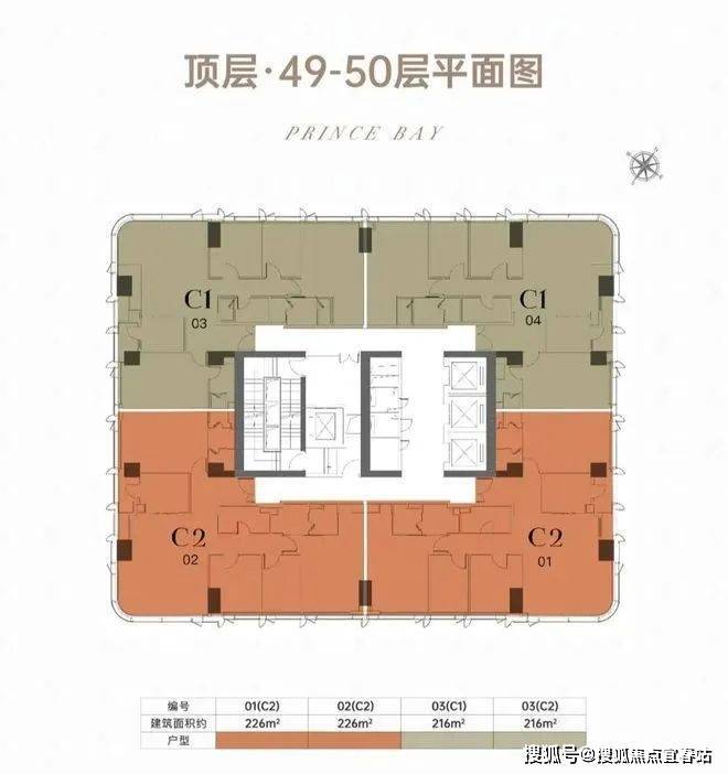 •建筑形态:194米超高层塔楼,共50层,分为低区(9-38层)、高区(39-48层)及顶层(49-50层),梯户比从低区4梯8户到顶层4梯4户逐级优化。