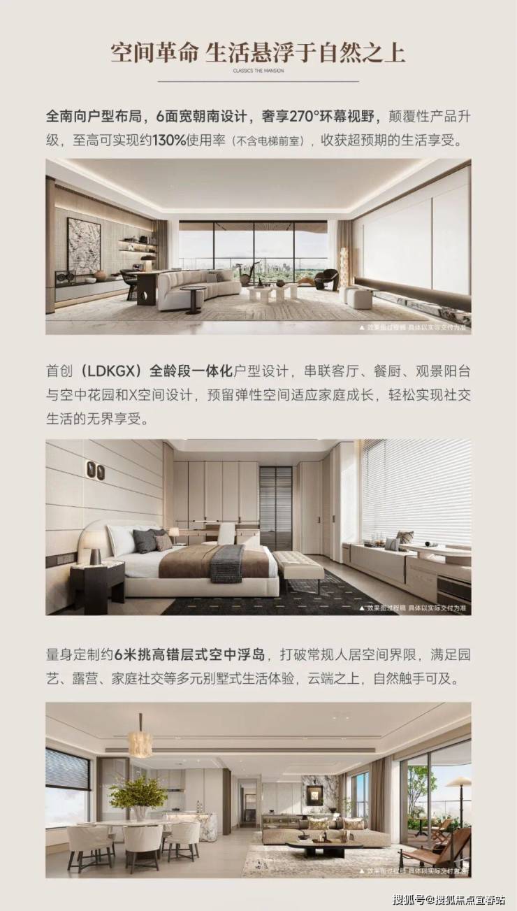 【169㎡天颂】约62㎡墅级横厅铺陈约21.2米南向采光面,约130%极致实用率(不含电梯前厅)重构约240㎡生活版图。约6米挑高空中会客厅悬浮于云端,于自然诗意中,启幕塔尖人生。