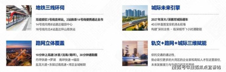 方洲无缝接驳地铁3号线吉祥站,两站换乘14号与16号线,一部短剧的时间直达岗厦北。约10分钟上水官高速、沈海高速,约15分钟上外环高速,约30分钟即达市内。