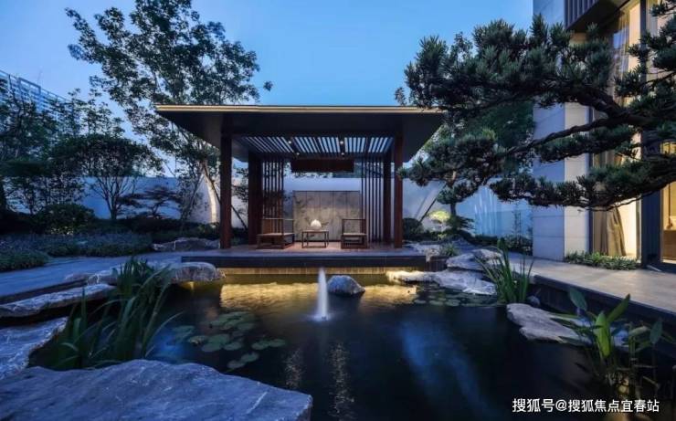 新中式庭院是现代文明背景下传统元素与现代材质激烈碰撞的产物,它强调“师法自然”的生态理念,以自然风光为主体,将庭院万象有机地融为一体,重在构造的精巧,更重在山水意境的创造。
