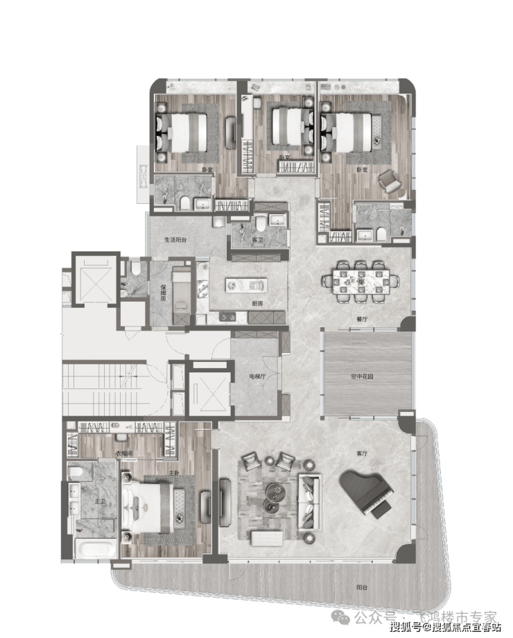 350㎡的大平层(5室2厅5卫),高层是带德系精装修交付的。