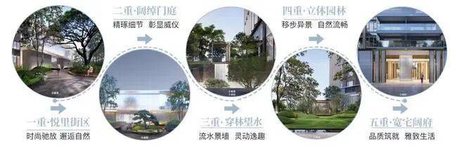 悦里街区、阔绰门庭、穿林望水、立体园林、宽宅阔府、层层递进,提升归家的仪式感与归属感。