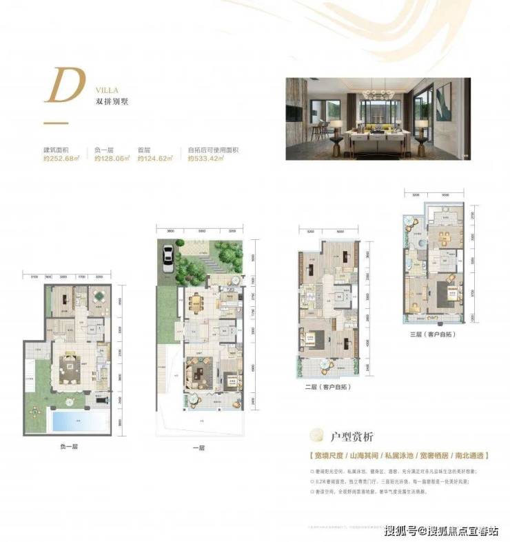 观山瞰海,前庭后院,全明地下室,悦享山海中悠然人生;双拼别墅更配有私家车位和私家泳池,独具尊贵享受。