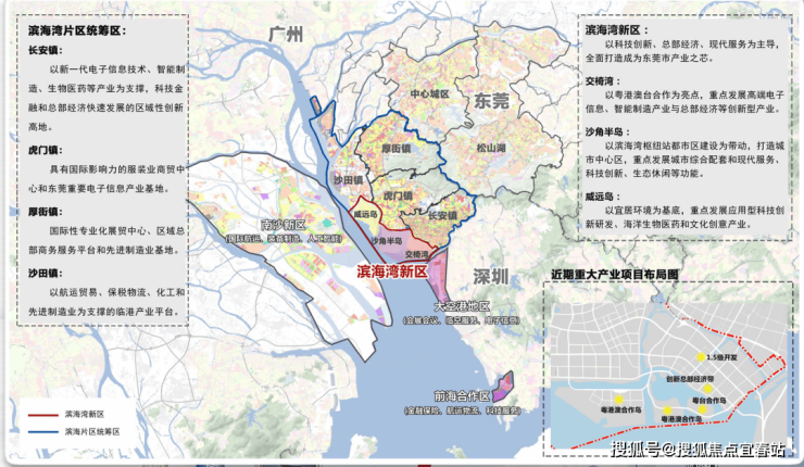 湾区新秀:2017年正式成立,地处粤港澳大湾区几何中心,是珠江口东岸主轴连片待开发区域,规划面积约83.2平方公里,总投资额超4000亿元,由长安交椅湾、沙角半岛、威远岛三大板块组成的,是广深港科创走廊的核心平台。