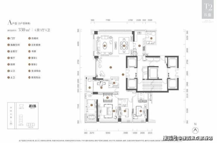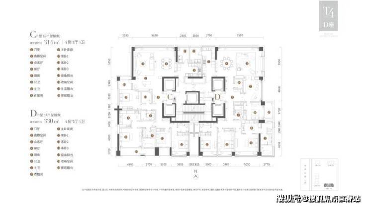 B/C户型:330m²四房三厅四卫,南北通透(卧室全南向)