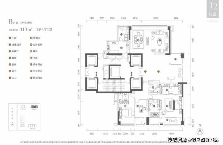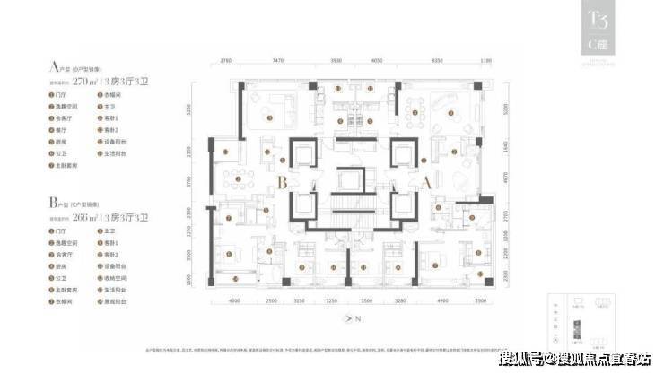 A/D户型:313m²三房三厅三卫,南北通透(卧室全南向)