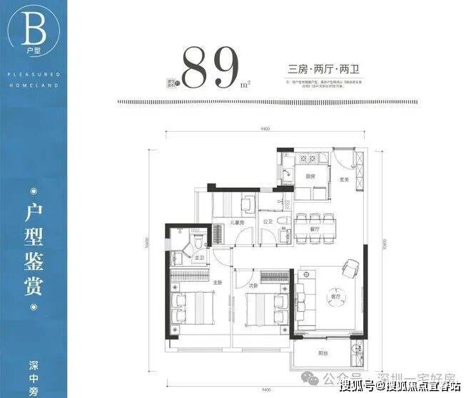 2. 89㎡三房两厅两卫