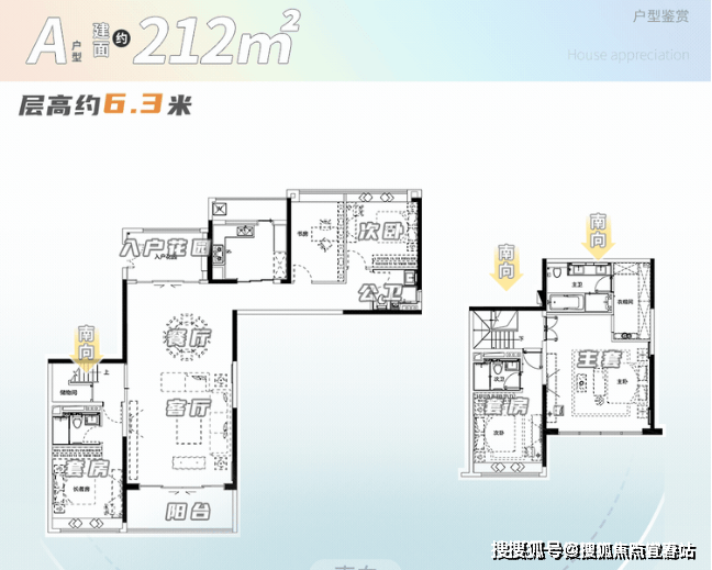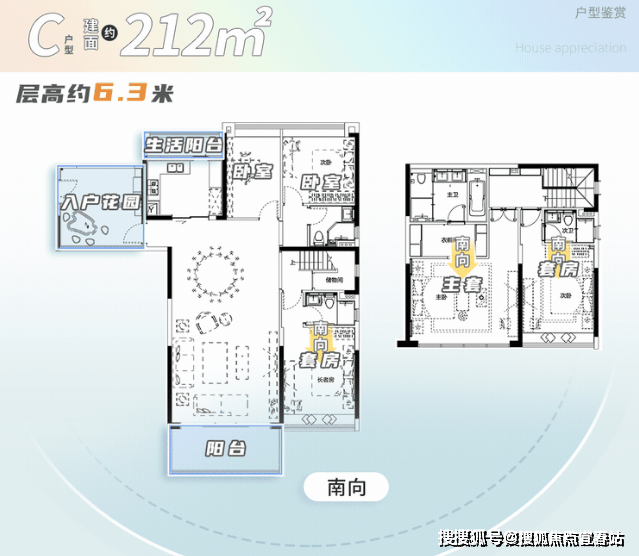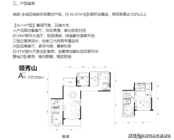 3:A+++户型设计奢华尺度, 入户花园与餐客厅、阳台贯通,南北对流通风。三独立套房设计,主卧套房面积达47㎡,享受全景落地窗景致。次卧设于私密空间,远离客厅,紧邻书房,提供舒适居住体验。静谧次卧套房朝南,配备飘窗,为居住者营造雅致舒适的生活环境。