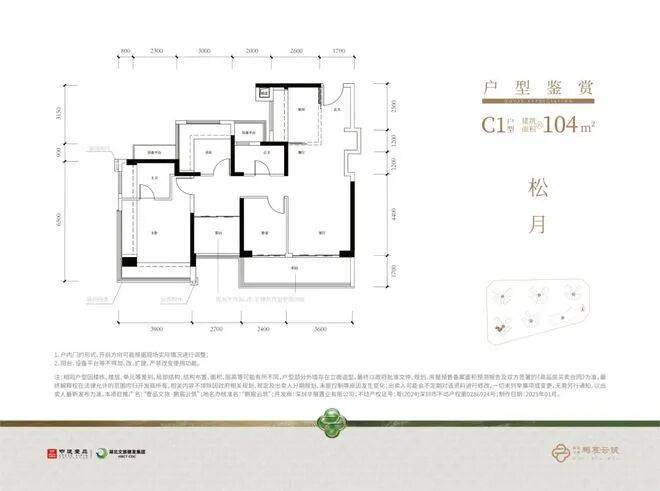 主力户型是104㎡的产品,带10.2㎡的阔景阳台,双阳台、双设备平台设计,加上主卧、书房L型阔景飘窗,户型使用率颇高。