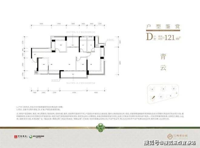 建面约121㎡的3房为横厅通透布局设计,阳台开间约6.3米,主卧、次卧带L型飘窗,玄关、厨房、卫生间带全景飘窗,户型采光、通透性较好。