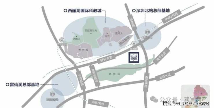 留仙洞总部基地:深圳六大总部基地之一,汇聚众多全球名企总部,目前大疆创新、航天科工、传音、万科等代表性企业入驻,未来将形成超3000亿元的产业集群,聚集至少60万高技术、高消费的财智人群。