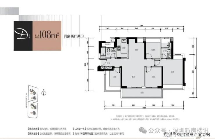 约108㎡四室两厅两卫,西南向(390-420万)(30-50层)