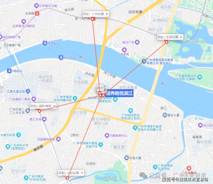 2.是江景,离珠江只有350m,步行不到5分钟,虽然不是一线,但前排建筑普遍低矮,可以望江。