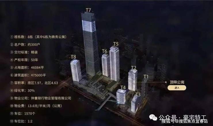 南区分为:T5、T6、T8公寓,T7为环球商务中心。