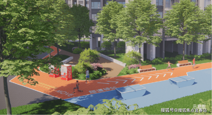 (約500米全齡跑道,高定式全周期歸家慢行步道)