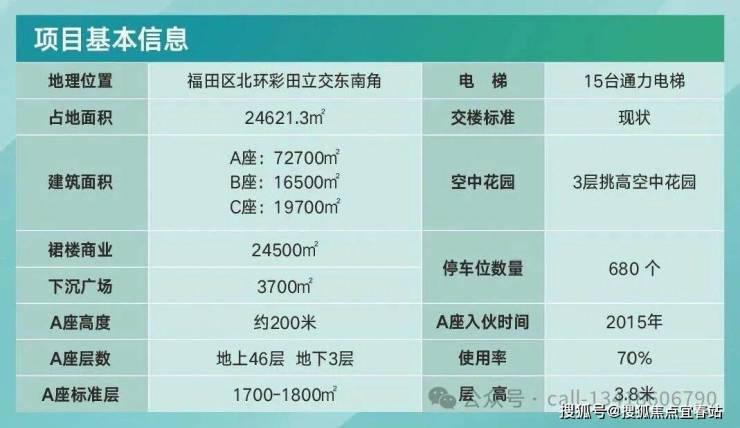 商务生态:甲级生态写字楼,福田CBD商务首选,高配无柱空间,70%使用率,尊享VIP系统,3700平米下沉式广场,三层挑高空中花园,立体生态绿色建筑。