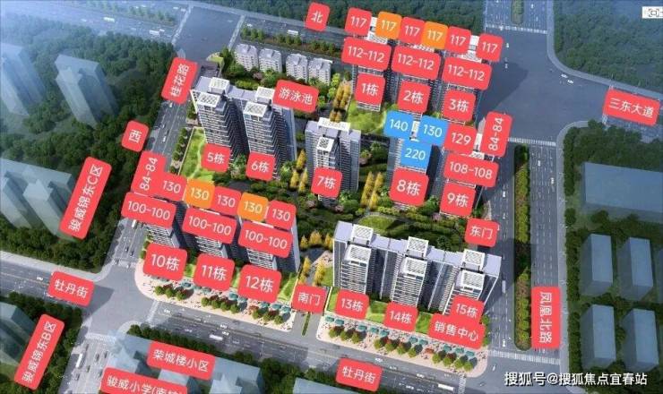 分别是1/2/3栋的112/117方三房和10/11/12栋的84方二房,100方三房,130方四房。