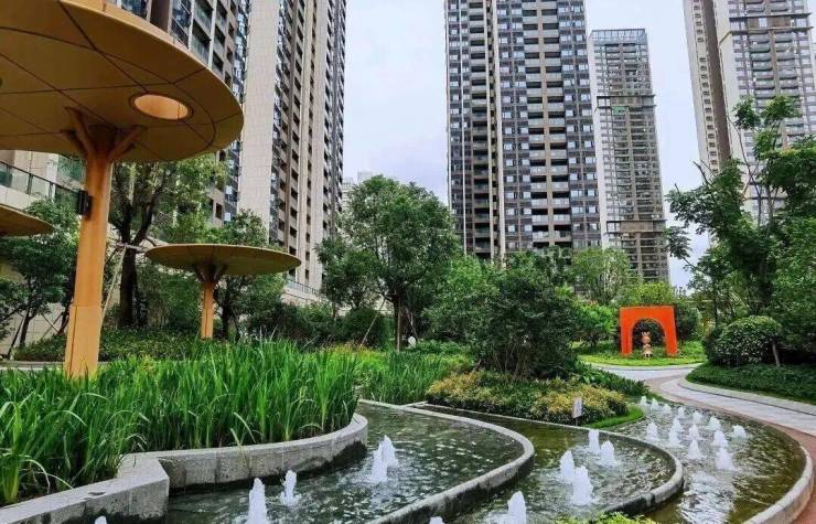 在园林里看玖玖颂阁的建筑设计,半围合设计,视野很开阔,而且因为建筑最高才31层,走在里面没有超高层的压迫感,31层的建筑现在都不多见了,它带来的实际用途就是户型使用率会比较高。